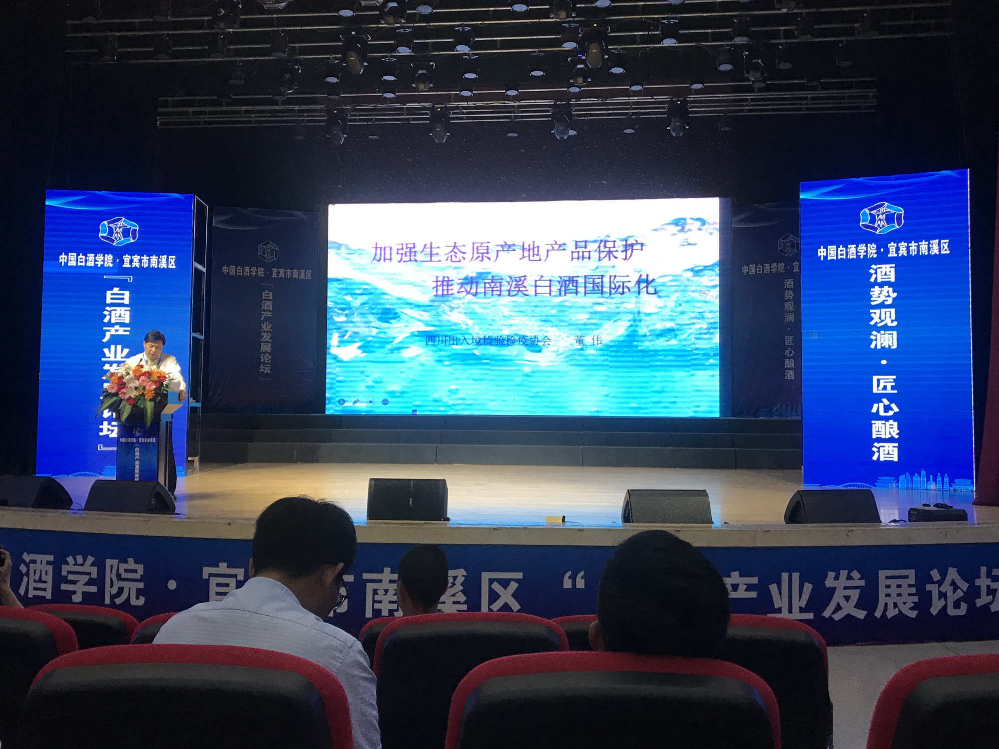 为展示南溪白酒品牌形象,提升南溪白酒美誉度,5月28日,中国白酒学院与宜宾市南溪区联合举办 “白酒产业发展论坛”系列活动,四川出入境检验检疫协会会长董伟受邀参加活动,并作《加强生态原产地保护,推动南溪白酒国际化》专题报告分享。