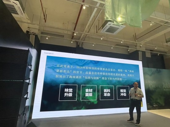 扎根海南,拥抱世界。海南菜因为自贸港去年封关,从此进入新时代,必须有新的表达和展示。党中央强调,守正而不守旧,尊古而不复古,对历史最好的继承就是创造新的历史,对人类文明最大的礼敬就是创造人类文明新形态。拾味馆在贯彻落实党中央精神上迈出了可喜步伐,取得了重要成就。提升海南菜影响力,必须多措并举。强化“鲜”“特”“健康”的品牌形象;考虑把“琼菜”(海南菜)改为“海菜”,这样更有气魄和气势;推动标准化建设;加强国内外宣传推广,善用电商与人工智能;培养专业人才;深化国际合作。特别建议要与世界中餐业联合会、中国烹饪协会等合作,在中国国际消费品博览会期间,举办“世界海(南)菜大会”,搭建全球性的展示、交流与产业合作平台,让世界更爱海南菜。盘中自有沧海,风味终成气象。